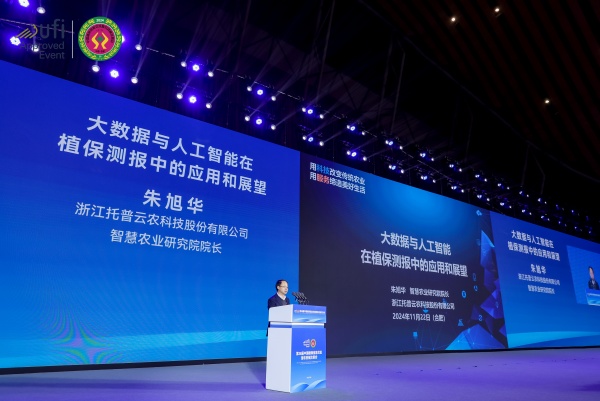 在信息發布會上,托普云農智慧農業研究院院長朱旭華作題為《大數據與人工智能在植保測報中的應用和展望》主題報告。他指出,人工智能技術的突飛猛進正深刻改變著農業領域,托普云農緊隨這一潮流,積極推動人工智能技術在植保領域的深度融合與創新應用,持續打造集動態監測、分析預警、綠色防控于一體的數智植保閉環綜合解決方案,為農產品質量安全提供了重要保障。